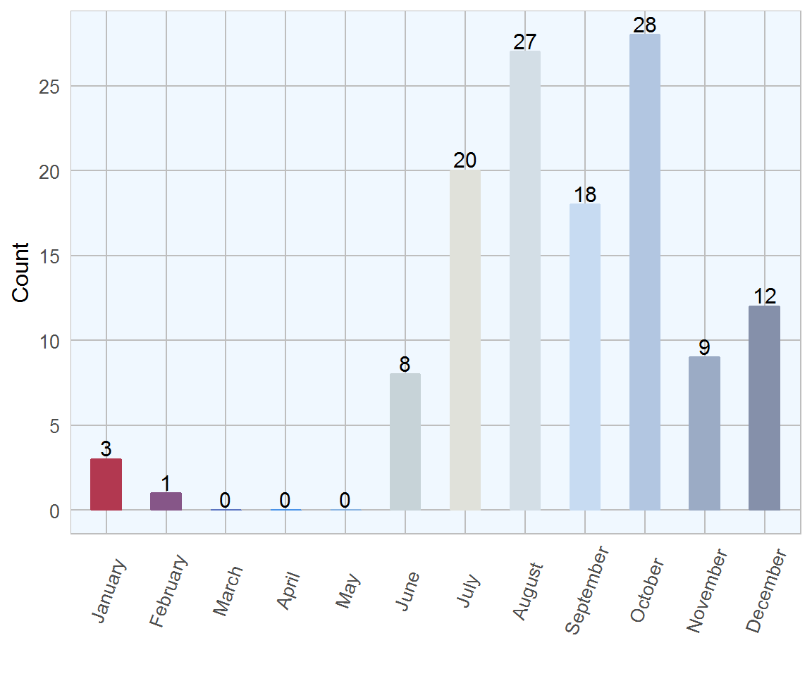 Figure 5.3: Number of diagnoses of parasitic bronchopneumonia by month during. 2017 (n= 126 )